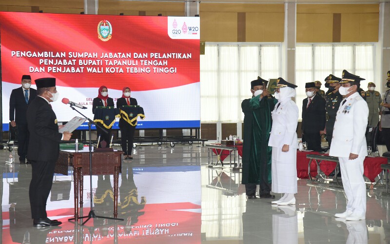 tobapos.co- Gubernur Sumatera Utara (Sumut) Edy Rahmayadi melantik Sekretaris Daerah (Sekda) Kota Tebingtinggi Muhammad Dimyathi menjadi Penjabat (Pj) Walikota Tebingtinggi dan Sekda Kabupaten Tapanuli Tengah (Tapteng) Yetti beru (br) Sembiring menjadi Penjabat (Pj) Bupati Tapteng. Pelantikan dilakukan setelah dua kepala daerah tersebut berakhir masa jabatannya.