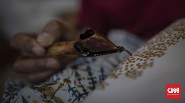 Video tersebut memperlihatkan seorang perajin tengah menggambar motif batik dengan alat serupa canting
