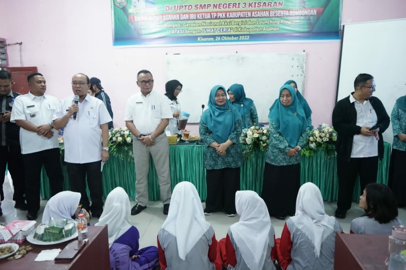 Setelah usai mengikuti kegiatan Virtual di SMP Negeri 3 Kisaran dengan peserta siswi SMP Negeri 3 Kisaran dan MTS Negeri 2 Kisaran Bupati Asahan yang diwakili oleh Sekretaris Daerah Kabupaten Asahan Drs. John Hardi Nasution, M. Si bersama dengan mewakili Kakankemenag Kabupaten Asahan, Ketua TP PKK Kabupaten Asahan Ny. Hj. Titiek Sugiharti Surya, Wakil Ketua II Bidang Pendidikan Ny. Hj. Derlina John Hardi, Kadis Kesehatan Kabupaten Asahan, Dinas Pendidikan, Camat Kota Kisaran Timur memberikan secara langsung tablet tambah darah kepada para siswi remaja putri.