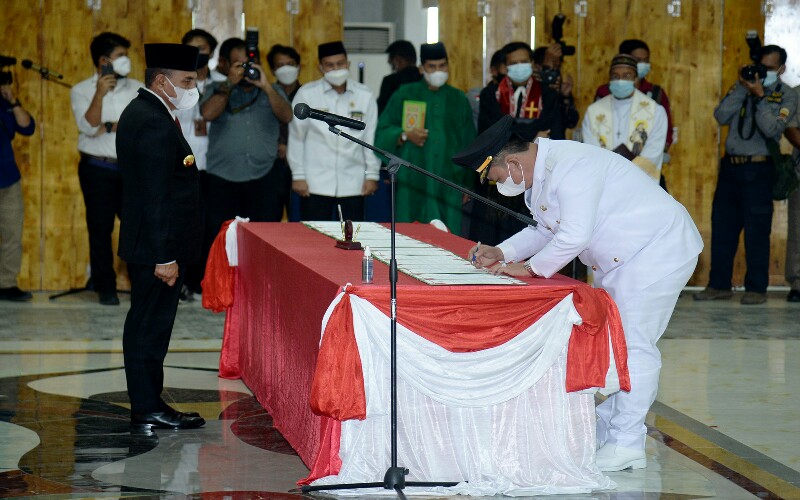 Walikota Gunungsitoli Lakhomizaro Zebua dan Wakil Walikota Gunungsitoli Sowa’a Laoli, Dan terakhir Wakil Walikota Binjai Amir Hamzah yang dilantik menjadi Walikota Defenitif Kota Binjai.