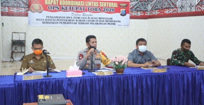 tobapos.co – Polres Asahan menggelar Rapat Koordinasi Lintas Sektoral OPS Ketupat Toba 2020 dalam rangka Idul Fitri 1441 H guna mencegah mata rantai penyebaran wabah covid-19 dan mendukung kebijakan pemerintah terkait pelarangan mudik Senin (04/05/2020) sekira pukul 09.00 wib.
