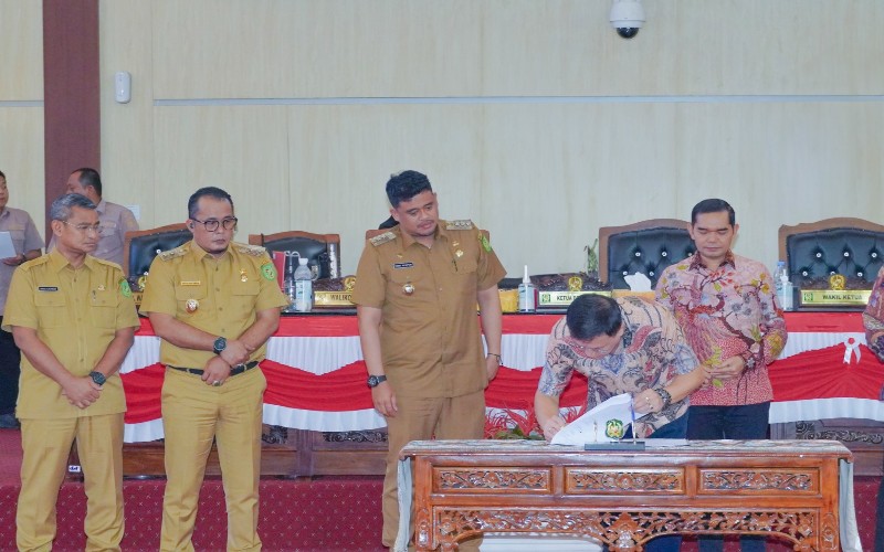 Rapat paripuna dipungkasi dengan penandatanganan persetujuan bersama antara Wali Kota Medan Bobby Nasution dengan Ketua DPRD Medan Hasyim SE disaksikan Wakil Wali Kota H Aulia Rachman, Sekda Kota Medan Wiriya Alrahman, tiga Wakil Ketua DPRD Medan yakni H Ihwan Ritonga, H Rajuddin Sagala dan HT Bahrumsyah, anggota dewan serta pimpinan OPD di lingkungan Pemko Medan serta para Camat.(TP)