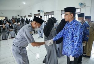 tobapos.co – Pemerintah Kabupaten Asahan melaksanakan buka puasa bersama dan gelar pawai takbiran hari raya Idul Fitri 1446 H tahun 2025 M. Bupati Asahan, Taufik Zainal Abidin, S. Sos., M.Si, bersama Wakil Bupati Asahan Rianto, SH., MAP, Ketua DPRD Asahan, Kapolres Asahan, Dandim 0208 Asahan, Mewakili Kejaksaan Asahan, Mewakili Danlanal Asahan, dan tamu undangan lainnya, melaksanakan buka puasa bersama dengan para ustadz safari Ramadhan Pemerintah Kabupaten Asahan yang berlangsung di Aula mawar Kantor Bupati Asahan Minggu, (30/03/2025). Dalam kesempatan ini Bupati Asahan mengajak seluruh umat Islam di Kabupaten Asahan untuk terus meningkatkan keimanan dan ketaqwaan kepada Allah SWT.
