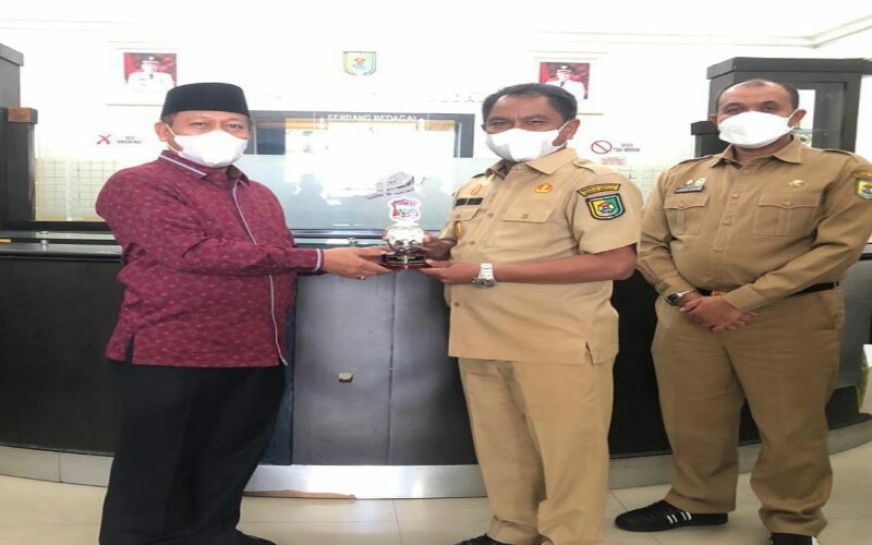 tobapos.co-Bupati Serdang Bedagai H. Darma Wijaya menerima kunjungan silaturahmi Plt. Walikota Tanjung Balai H. Waris Thalib, S.Ag, M.M, beserta rombongan, bertempat di Ruang Tamu Bupati, Kompleks Kantor Bupati Sergai, Sei Rampah, Selasa (28/9/2021).