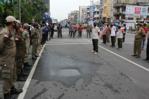 Seperti yang dilakukan pada Kamis (22/10), Pemko Medan melalui tim gabungan percepatan penanganan covid-19 Kota Medan kembali melakukan razia masker di jalan M.T Haryono atau tepatnya di depan Medan Mall.