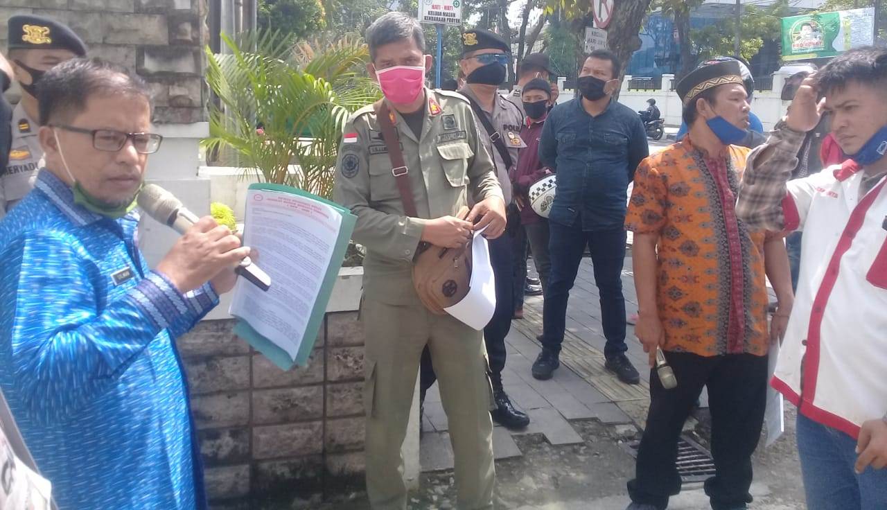 tobapos.co – Puluhan buruh berunjuk rasa di kantor Gubernur Sumatera Utara (foto-red), Jumat (19/06/2020). Mereka meminta Gubernur Sumut Edy Rahmayadi memberikan sanksi tegas kepada ASN Pengawas Ketenagakerjaan Dinas Tenaga Kerja Provinsi Sumatera Utara yang tidak serius menangani pengaduan buruh.