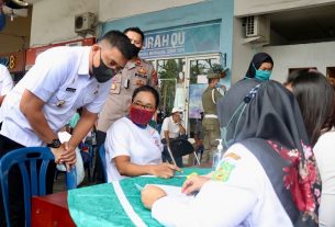 tobapos.co – Bupati Sergai Ir Soekirman menghadiri kegiatan pengukuhan PAMOR dan sekaligus panen padi organik di dusun C Desa Tanah Merah, Kecamatan Perbaungan, Selasa (4/08/2020).