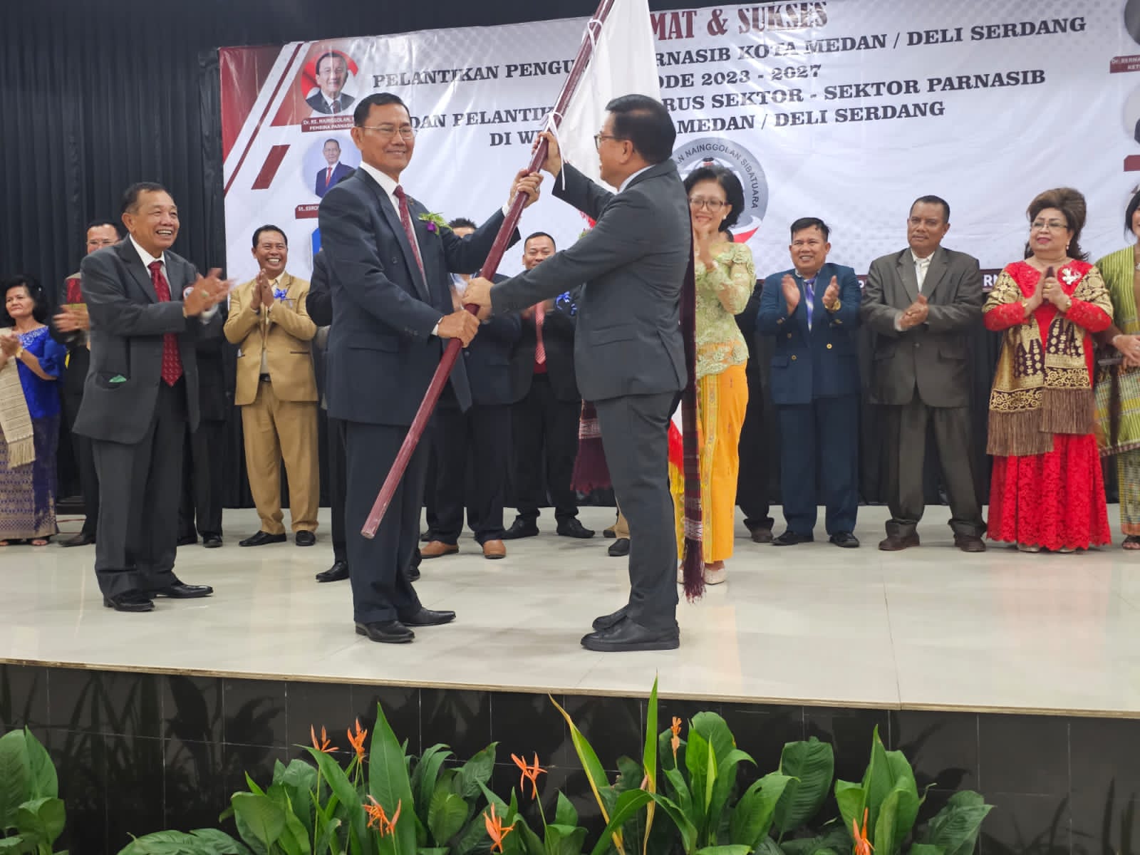 Lanjut dilakukan pembacaan Pengurus PARNASIB Se-Kota Madya Medan – Deli Serdang yang terpilih untuk Periode Tahun 2023 -2027: Ketua – St. Esron Nainggolan.SH.MH; Sekretaris – Dr. Mangido Nainggolan.Msi; Bendahara- Diana Nainggolan SH; Bidang Kerohanian, Bidang Adat dan Bidang Lainnya turut dilantik, sekaligus diharapkan bisa melaksanakan tugasnya secara maksimal, sehingga program dapat berjalan dengan baik.