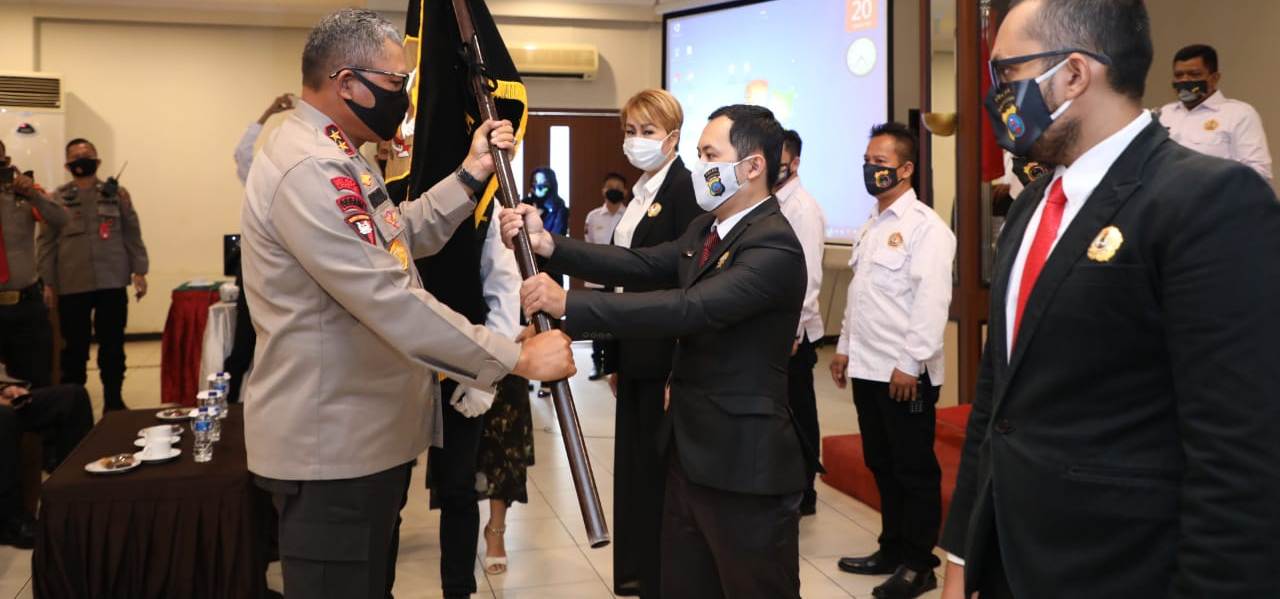 tobapos.co – Kapolda Sumut Irjen Pol. Drs. Martuani Sormin, M.Si didampingi Dir Binmas Polda Sumut dan Kabid Humas Polda Sumut kukuhkan pengurus (foto-red), Pokdarkamtibmas Bhayangkara (Kelompok Sadar Keamanan Ketertiban Masyarakat) wilayah Sumut yang dilaksanakan di Aula Kasuari Hotel Garuda Plaza Jalan SM. Raja Medan. Rabu (17/6/2020)