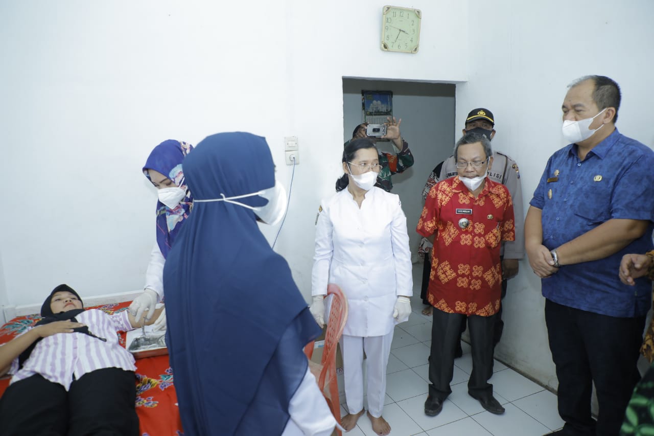 tobapos.co – Wakil Bupati Asahan Taufik Zainal Abidin Siregar, S. Sos, M. Si bersama dengan Asisten Adminsitrasi Umum, Kepala Dinas Perpustakaam, Sekretaris KB Kabupaten Asahan, Camat Kecamatan Air Batu dan Unsur Forkopimcam Kecamatan Air Batu meninjau pelaksanaan pelayanan KB serentak sejuta akseptor di Puskesmas Pembantu Desa Danau Sijabut Kecamatan Air Batu dalam memperingati Hari Keluarga Nasional (Harganas) ke XXVIII Kabupaten Asahan Tahun 2021, Kamis (24/06/2021).