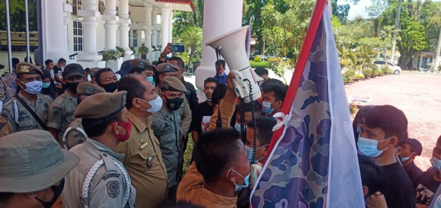 Namun dikarenakan Bupati Asahan tidak berada di tempat akhirnya para pendemo membubarkan diri dan melanjutkan aksi damainya di bundaran Tugu Juang jalan Imam Bonjol Kisaran. (Adit)