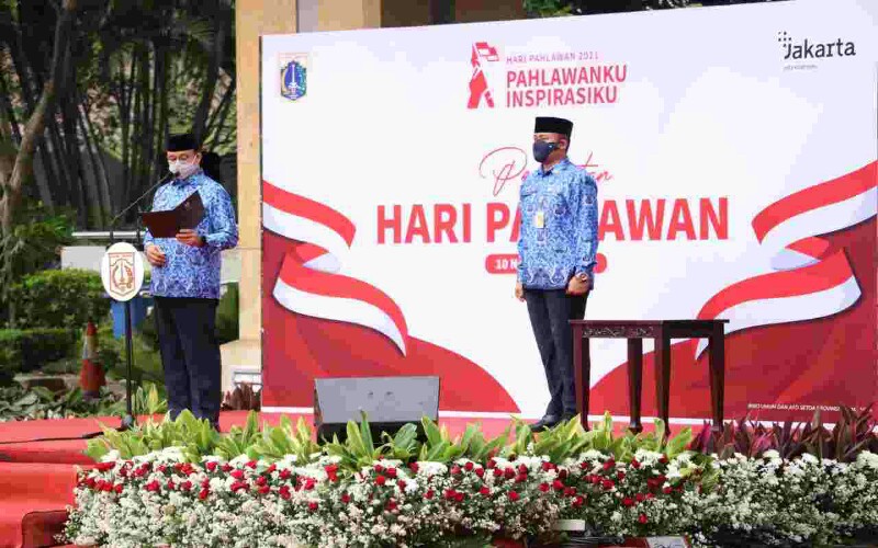 tobapos.co – Gubernur Provinsi DKI Jakarta, Anies Baswedan, menjadi inspektur upacara dalam peringatan Hari Pahlawan yang dihadiri oleh jajaran Forkopimda DKI Jakarta di Halaman Balai Kota Jakarta, pada Rabu (10/11/2021).