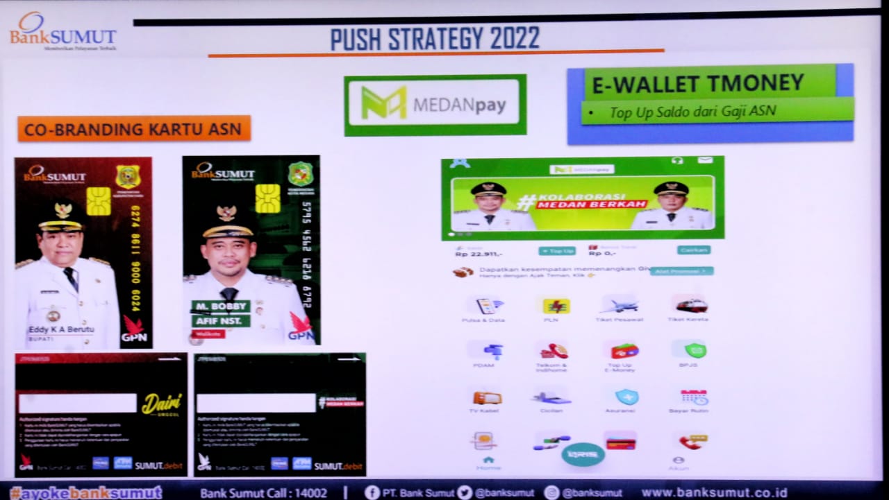 Selanjutnya dalam rapat tersebut pihak Bank Sumut juga memaparkan terkait pelayanan transaksi non tunai dengan menggunakan aplikasi Medan Pay. Dimana dalam paparanya disebutkan aplikasi Medan Pay memiliki sejumlah fitur pembayaran secara digital yang dapat digunakan oleh masyarakat serta terintegrasi dengan bank-bank lainya.