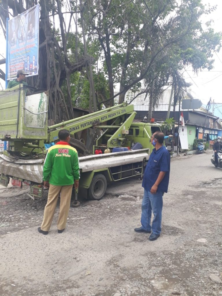 tobapos.co–Warga Jalan Rasak Kelurahan Sekip, Kecamatan Medan Petisah mengaku sangat senang setelah permohonan pemangkasan pohon Beringin dikabulkan Dinas Pertamanan kota Medan Senin (2/11/2020).