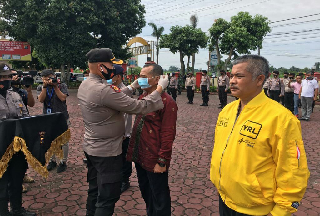 Menindaklanjuti itu Polres Asahan membagikan 40 ribu masker dan terus memberikan imbauan penerapan protokol kesehatan kepada masyarakat.