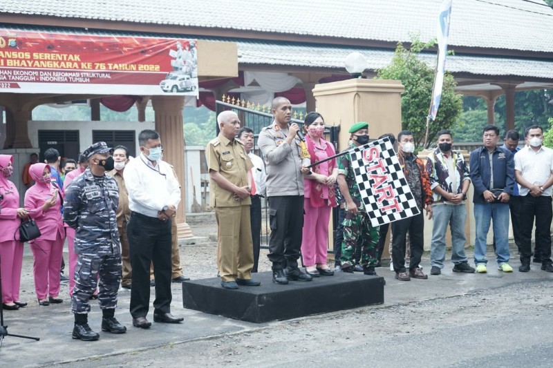 tobapos.co – Polres Asahan menyalurkan Bantuan Sosial (Bansos) berupa 1200 paket sembako kepada masyarakat Kabupaten Asahan dalam rangka Peringatan Hari Bhayangkara ke-76 Tahun 2022. Penyerahan Bansos ini diserahkan secara serentak di seluruh Indonesia.