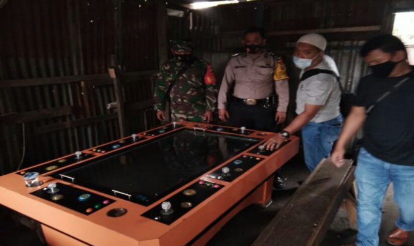 tobapos.co – Personel Polsek Medan Labuhan bersama unsur Muspika Kecamatan Medan Deli melakukan penggrebekan lokasi judi jenis tembak ikan dan jackpot (Dindong) dari beberapa lokasi berbeda di Lingkungan VII Kelurahan Mabar, Kecamatan Medan Deli dan Simpang KIM Jalan Yos Sudarso Kecamatan Medan Deli, Selasa (5/1/2021).
