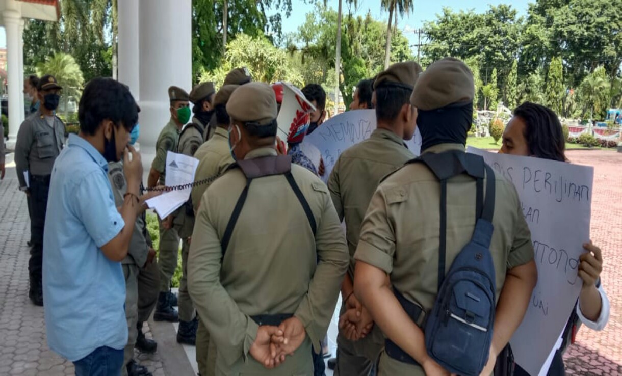 Setelah melakukan aksi di kantor Bupati Ashaan, para mahasiswa ini langsung menuju kantor Dinas Lingkungan hidup untuk melanjutkan aksinya. (do)
