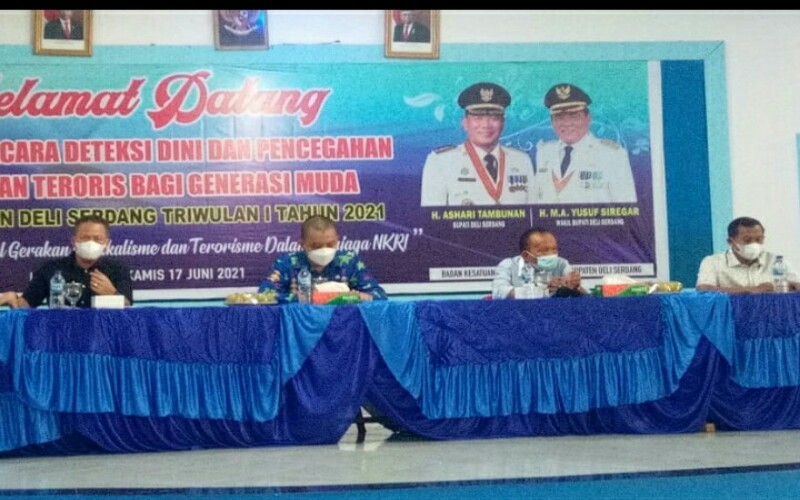 tobapos.co – Pencegahan sedini mungkin terhadap ancaman radikalisme dan terorisme dibicarakan pada acara yang diadakan Badan Kesatuan Bangsa dan Politik Kabupaten Deli Serdang di Aula Sekolah Sinar Husni, Desa Helvetia, Kecamatan Labuhan Deli, Kamis (17/6/2021).