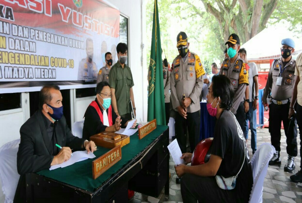 Dalam pelaksanaan operasi yustisi tersebut di bagi menjadi 4 titik di seputaran jalan Lapangan Merdeka Kota Medan. Kapolda Sumut turun langsung melaksanakan razia masker di lapangan Merdeka Kota Medan hingga meninjau ke stasiun kereta api Medan mulai dari loket hingga ruang tunggu keberangkatan penumpang kereta api.