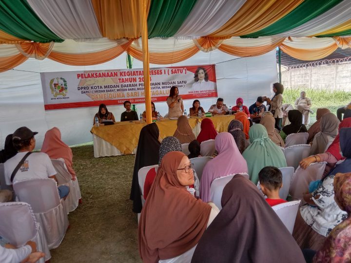 tobapos.co–Anggota Dewan Perwakilan Rakyat Daerah (DPRD) Kota Medan, Dame Duma Sari Hutagalung SH kembali melaksanakan Reses I Masa Sidang I TA 2024 sesi III, di Jalan Setia Luhur Lingkungan XI No.186 Kelurahan Dwikora, Kecamatan Medan Helvetia, Senin (22/01/2024) pukul 15.00 WIB.