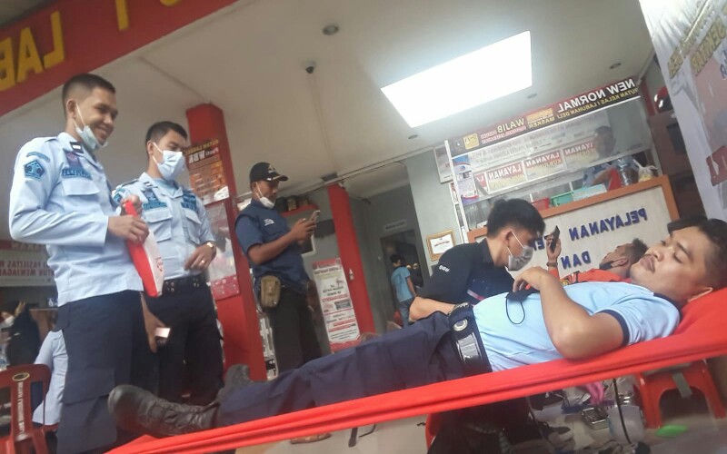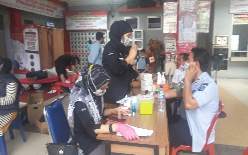 tobapos.co – Dalam peringatan Hari Dharma Karyadhika (HDKD) ke-76, Rutan Klas I Labuhan Deli gelar donor darah di ruangan tunggu Rutan Klas I Labuhan Deli, Kamis (21/10/2021).
