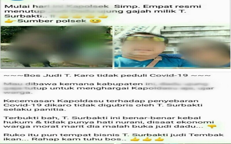 Terkait itu, saat ini masa pandemi covid-19 khususnya di Sumut seperti dikatakan Gubernur Edy Rahmayadi, korban yang terkonfirmasi semakin terus bertambah. Namun apalah jadinya, bila sampai anak sekolah pun diliburkan sedangkan arena-arena perjudian yang menyebabkan keramaian dan sangat rawan menjadi kluster penyebaran seperti dibiarkan?(TIM)