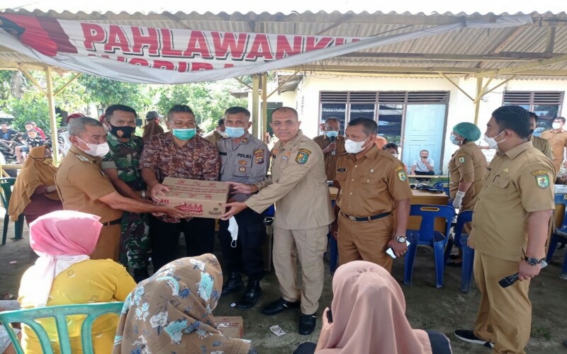 Termasuk pada hari ini, Selasa (14/12/2021), di Desa Celawan Kecamatan Pantai Cermin. Sekretaris Daerah Kabupaten (Sekdakab) H. M. Faisal Hasrimy, AP, MAP meninjau langsung pelaksanaan vaksinasi.