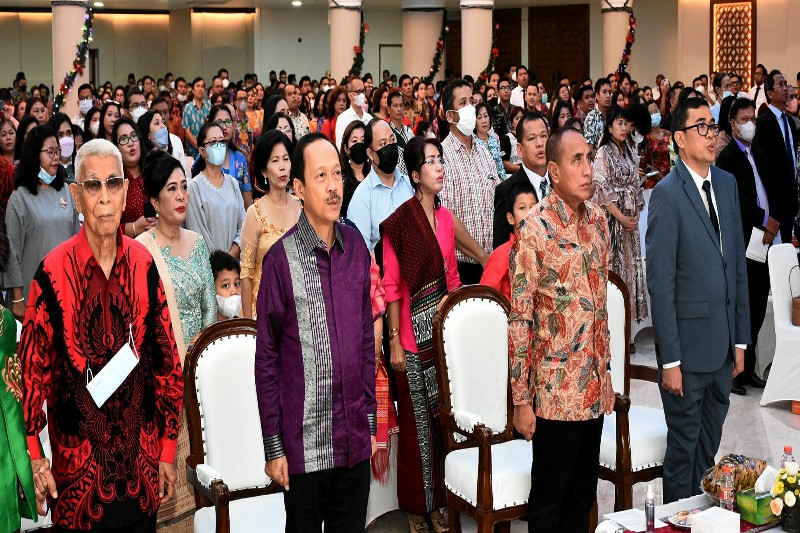 Perayaan Natal ASN berlangsung hikmat dan sederhana, kelihatan para hadirin dan undangan penuh sukacita bersama diiringan lagu rohani.