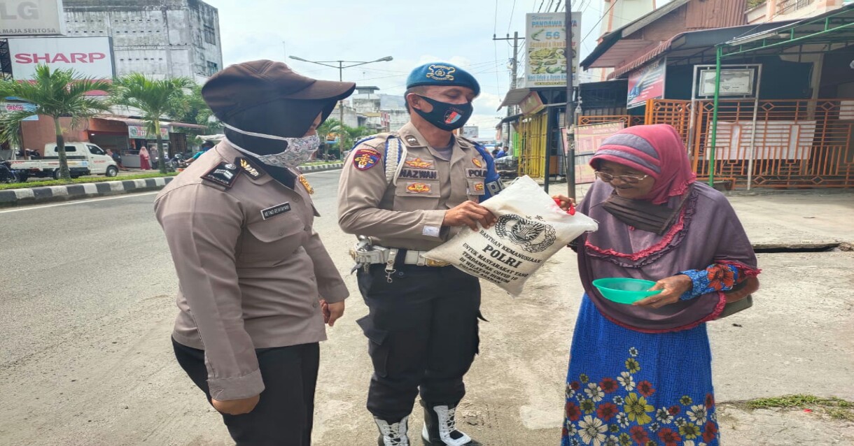tobapos.co – Untuk menyikapi situasi perekonomian masyarakat terdampak pandemi Covid-19, jajaran Satlantas Polres Asahan bagi-bagi beras diseputaran inti kota kisaran,yang langsung di pimpin oleh Kanit Laka Satlantas Polres Asahan Ipda M.Roni Selasa (23/6/2020) sekira pukul 11.30 wib.
