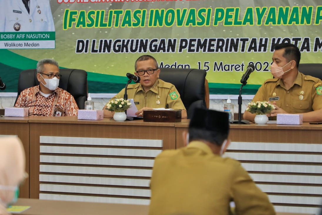 Menyikapi hal tersebut Pemko Medan melalui Bagian Organisasi dan Tata Laksana (Orta) menggelar kegiatan Fasilitasi Inovasi Pelayanan Publik di Ruang Rapat III Kantor Wali Kota Medan, Selasa (15/3/2022). Pertemuan yang dibuka oleh Wali Kota Medan Bobby Nasution diwakili Asisten Umum Renward Parapat ini diharapkan setiap penyelenggara pemerintahan dapat meningkatkan kualitas pelayanan publik lewat inovasi yang dimiliki salah satunya lewat program one agency one innovation.