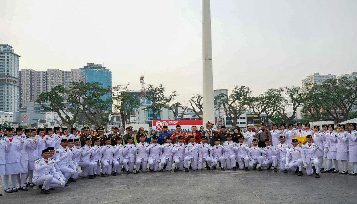 Wali Kota Medan, Rico Tri Putra Bayu Waas, bertindak sebagai inspektur upacara dengan mengenakan pakaian adat Toba. Upacara diikuti oleh segenap unsur Forkopimda, Wakil Wali Kota H. Zakiyuddin, tokoh masyarakat, Ketua TP PKK Airin Rico Waas, Sekda Wiriya Alrahman, pimpinan perangkat daerah, serta ribuan warga yang memadati kawasan titik nol Kota Medan tersebut.