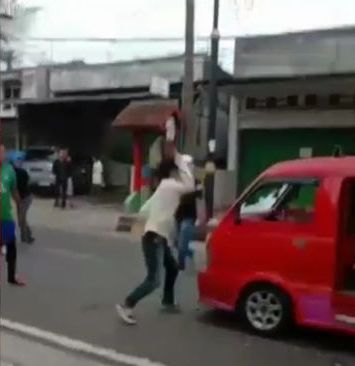 Video berdurasi 27 detik itu memperlihatkan detik-detik sekelompok pemuda menghancurkan angkot.