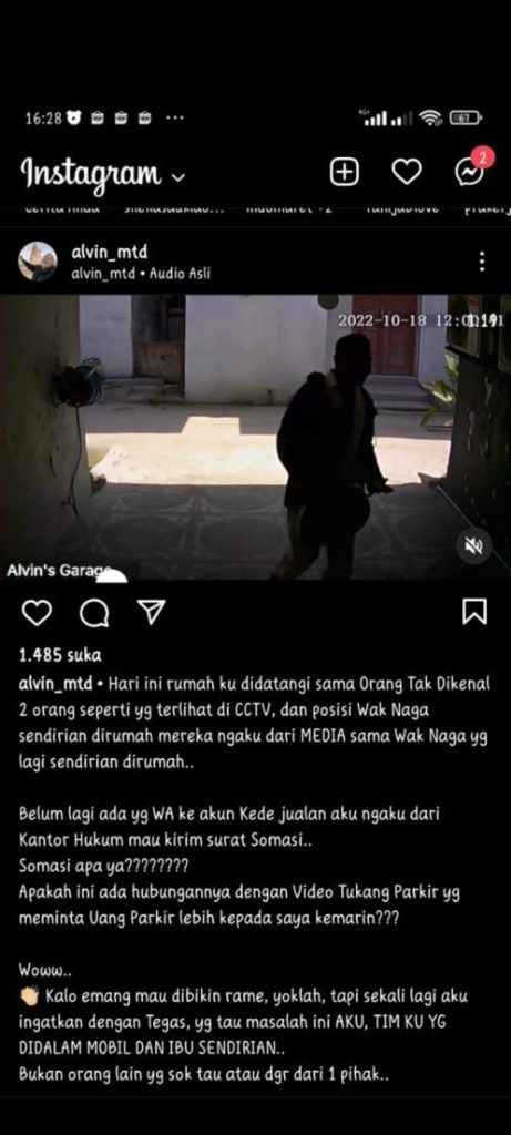 Isi somasi menerangkan bahwa Marliana Boru Sihotang bekerja sebagai juru parkir yang resmi dari Dinas Perhubungan Pemko Medan dan lahan parkir sekitar ruas Jalan Raden Saleh Medan yang disediakan Pemko Medan dan tidak ada terindikasi pungli sebagaimana yang diduga disiarkan oleh akun Alvin Matondang pada 12 Oktober 2022 lalu.