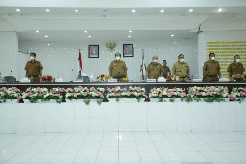 tobapos.co – Wakil Bupati Asahan Taufik Zainal Abidin Siregar, S. Sos, M. Si didampingi Sekretaris Daerah Kabupaten Asahan, Asisten Perekonomian dan Pembangunan, Asisten Administrasi Umum dan Staf Ahli Bupati Asahan membuka Rapat Koordinasi Pemerintahan (Rakorpem) Bulan Juni 2022 di Aula Melati Kantor Bupati Asahan, Senin (13/06/2022).