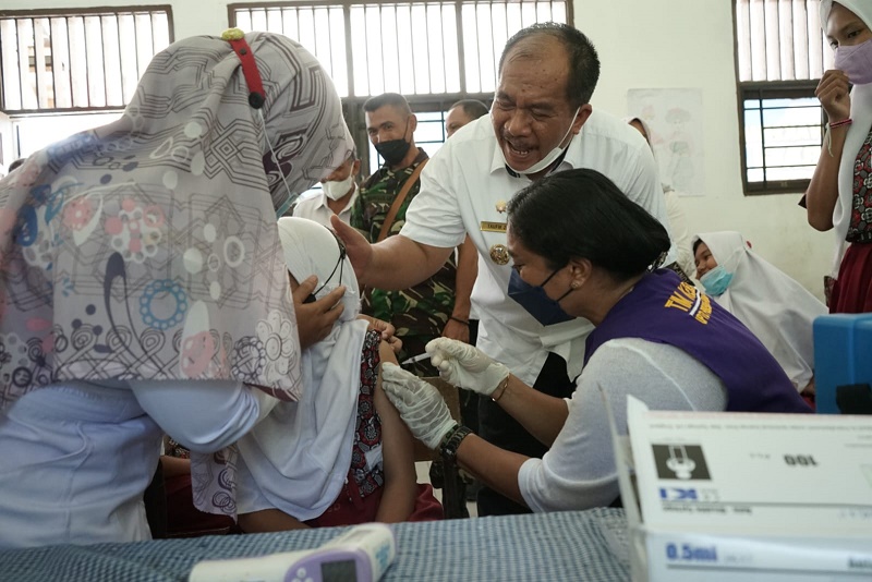 Wakil Bupati Taufuk Zainal Abidin, S.Sos, MSi usai peninjauan, mengatakan pemberian Vaksin kepada kelompok Usia 06-11 tahun merupakan tindak lanjut dari arahan Presiden RI beberapa waktu yang lalu.